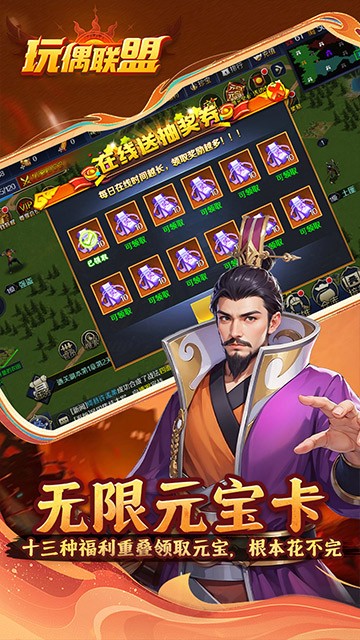 这是一款以三国题材放置挂机与战争策略结合的游戏。玩家可通过编队、技能体会到多重的策略维度、辽阔的国土战场、独特的武将技能以及瞬息万变的国战局势。带领将士排兵布阵,运筹帷幄,以夺天下!
